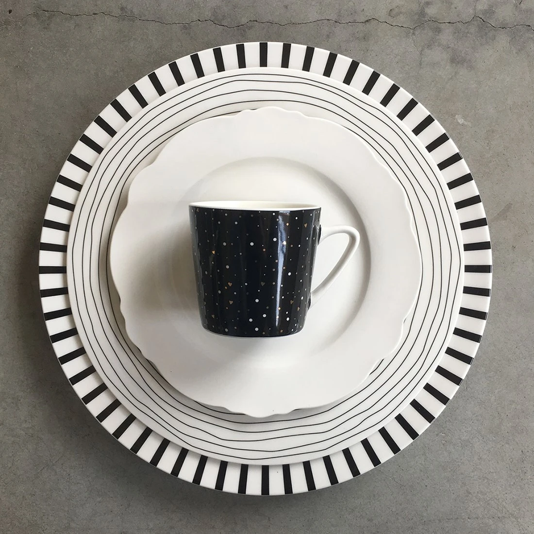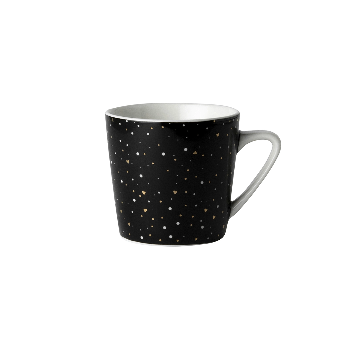 Zet een heerlijk kopje koffie in de Dutch Rose Amsterdam Loft minimok 20 cl zwart glitter. Je wordt meteen vrolijk van de koffiemok met gouddetails. Behandel deze porseleinen mok met zorg: door de gouden details is ie niet geschikt voor de magnetron of vaatwasser.