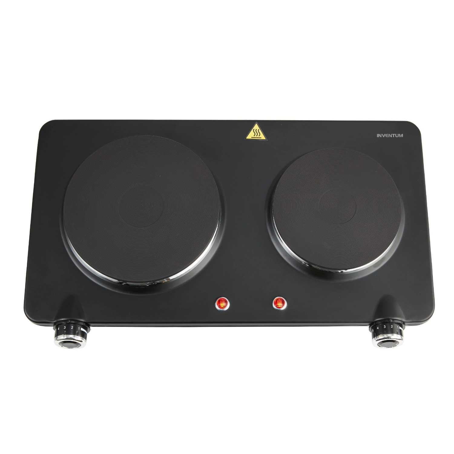 De Inventum elektrische 2-pits kookplaat KP602B heeft een vermogen van 1900 watt en 2250 watt. De kookplaat heeft gietijzeren pitten, een metalen behuizing en is makkelijk te bedienen met draaiknoppen. Deze kookplaat is bijvoorbeeld erg handig voor op een studentenkamer of om mee te nemen naar de camping.