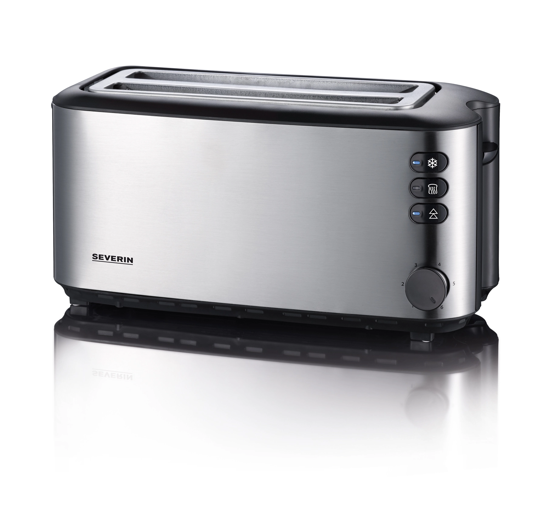 De Automatische Broodrooster van Severin heeft een warmte-isolerende roestvrijstalen behuizing, een variabele bruiningsinstelling, 2 lange sleuven voor tot wel 4 sneetjes toast, een kruimellade, snoeropberging en wordt automatisch uitgeschakeld wanneer brood vast is komen te zitten. Naast de diepvriesbroodknop is er een stand om broodjes mee op te warmen zonder extra te bruinen. Het broodrooster heeft een vermogen van 1400 Watt.