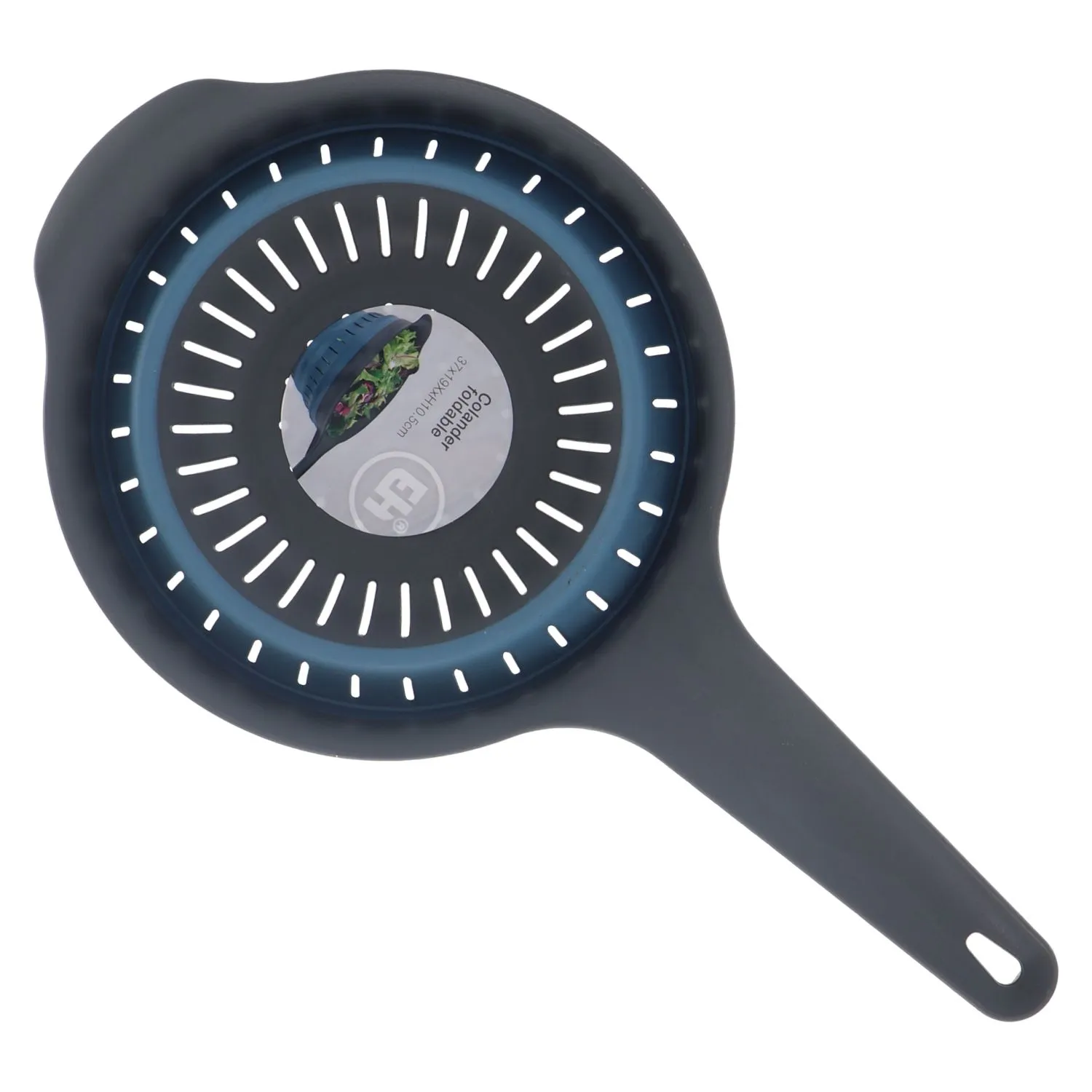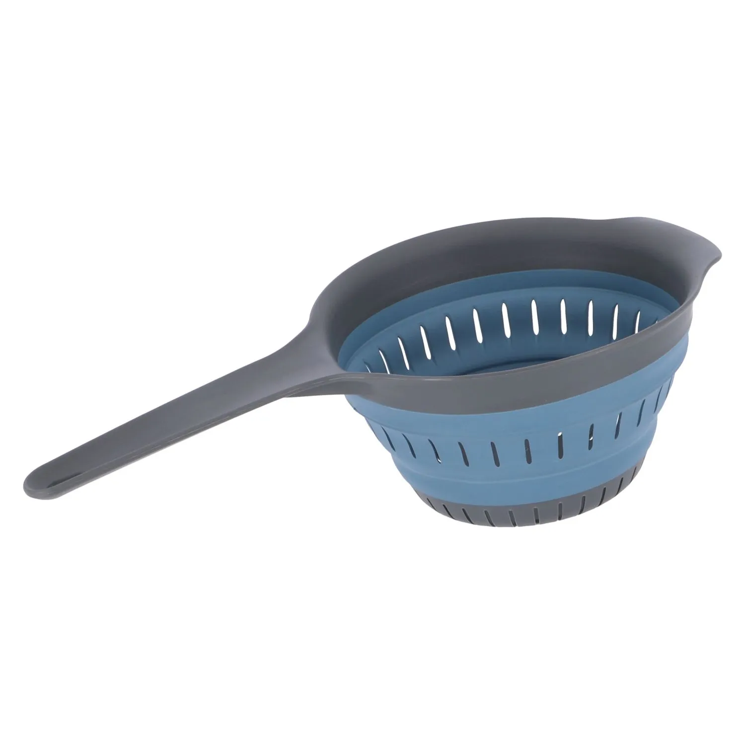 Dit handige opvouwbare vergiet is handig in gebruik door zijn grote handvat. Na gebruik kunt je heb eenvoudig tot een compact formaat samendrukken. De diameter van het vergiet is circa 19 cm met een diepte van 10 cm. Het vergiet bestaat uit zwart met blauw TPE, dit materiaal is stevig en tegelijkertijd elastisch.