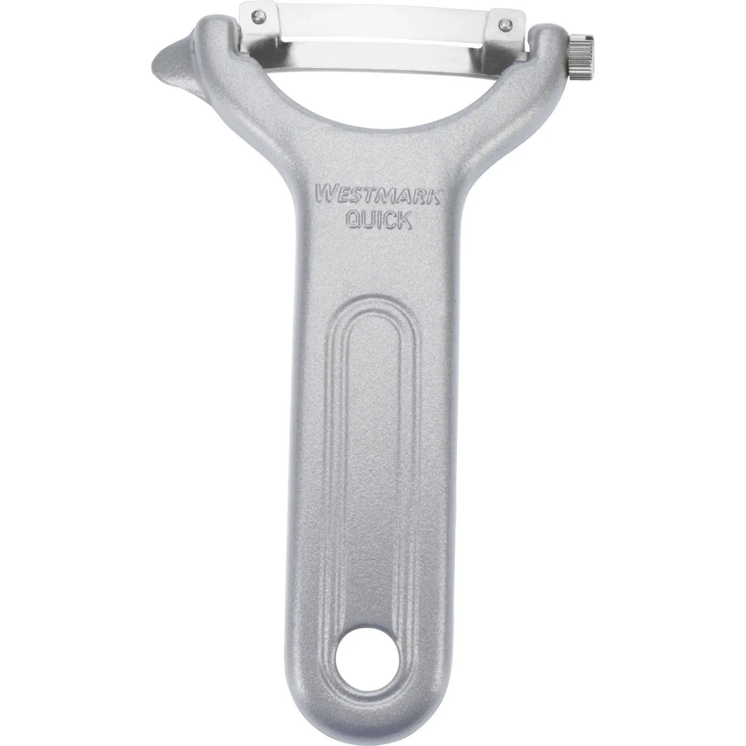 Schil je groenten en fruit met de Westmark Dunschiller van aluminium. De dunschiller heeft een mes dat gemaakt is van sterk RVS. Het mes van de dunschiller heeft een breed snijblad, waarmee je lange banen kunt schillen. Schil wortel en komkommers voor een lekkere rauwkost salade of schil er je aardappels mee voor de stamppot. Na gebruik kan de dunschiller in de vaatwasmachine. Afmeting: 12,8 x 7,7 x 1,5 cm.