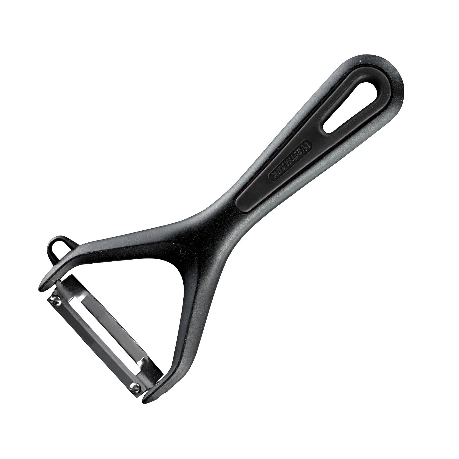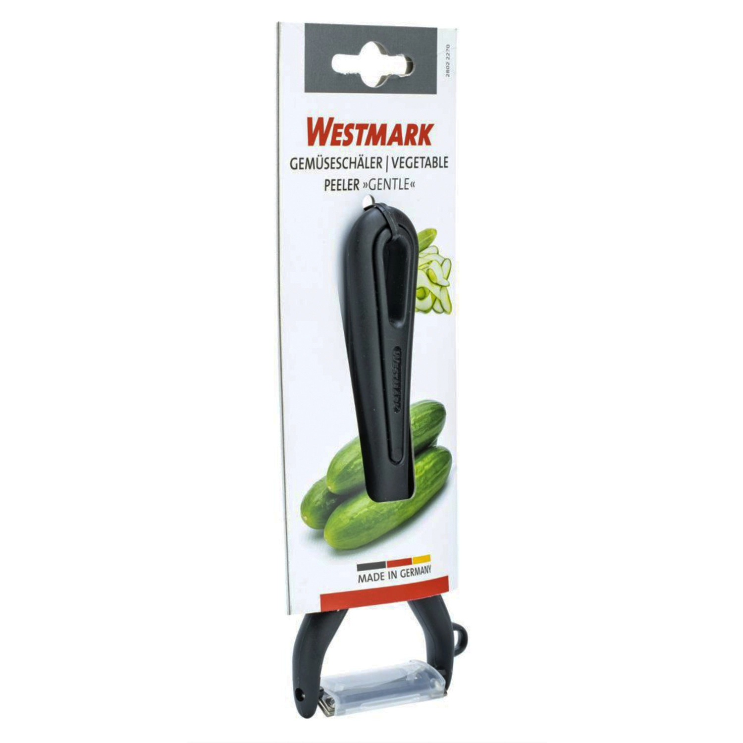 Deze groente-/aspergeschiller van Westmark is ideaal voor het schillen van ronde of langwerpige groenten en fruit zoals asperges, komkommer, aardappelen en appels. De dunschiller heeft ook een uitsteker voor rotte stukjes. Hij is flexibel, heeft een vastgeschroefd mes dat zich automatisch aan de vorm van het voedsel aanpast. Het mes van de dunschiller kan eenvoudig vervangen worden.Â