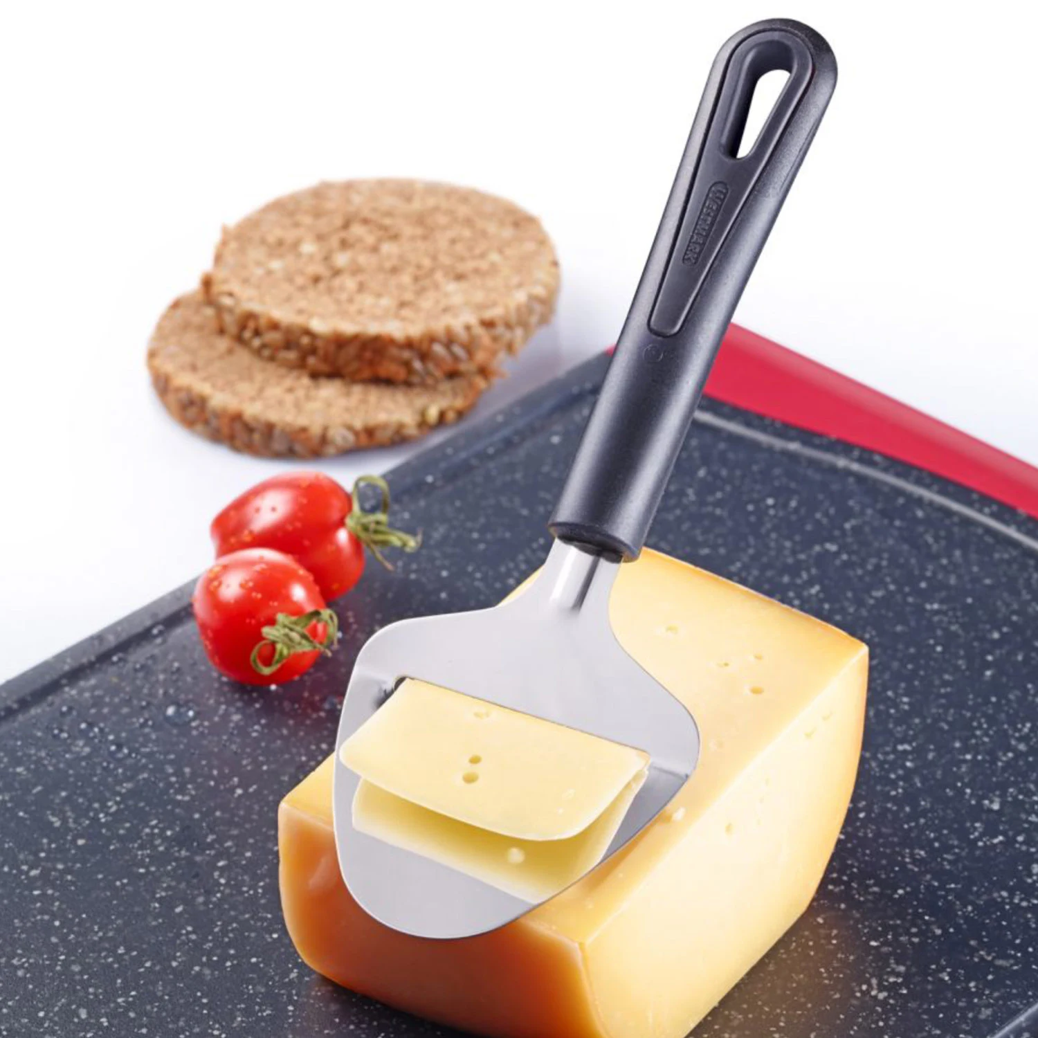 Deze praktische kaasschaaf van Westmark is perfect voor het snijden van harde kaas zoals Parmezaanse kaas, Pecorino of alpenkaas. Perfect gevormde, gelijkmatig gesneden plakjes dankzij speciaal geslepen roestvrijstalen mes; individueel instelbare snijdikte door meer of minder druk uit te oefenen. Gebruiksvriendelijk dankzij de afgeronde handgreep van hoogwaardig kunststof; ophangoog voor het eenvoudig ophangen aan de wand; compact voor ruimtebesparend opbergen in de keuken.