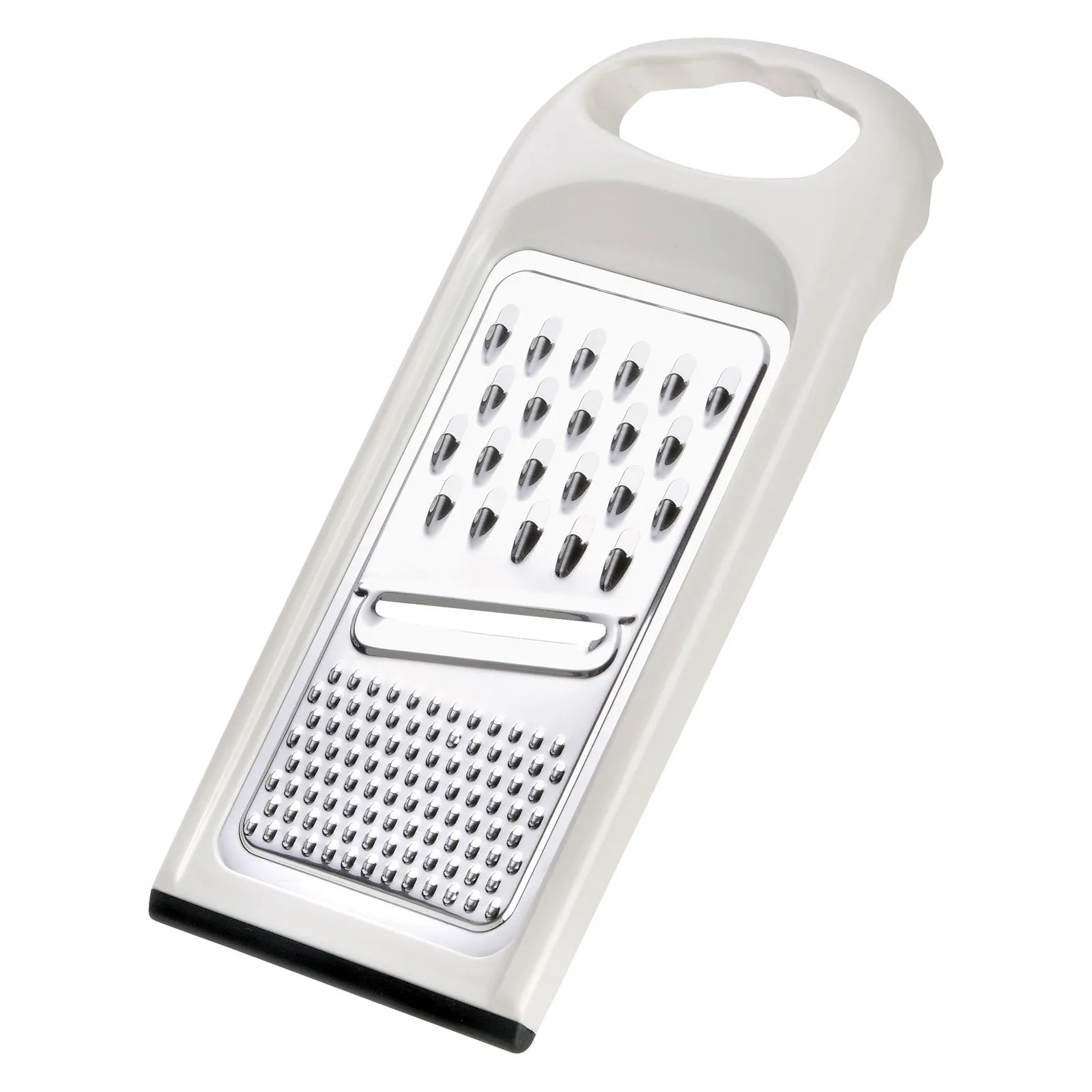 Met deze hoogwaardige universele rasp van Westmark kun je moeiteloos en snel fruit, groenten, noten, harde kaas, chocolade en nog veel meer raspen. De scherpe roestvrijstalen messen zorgen voor een perfect raspresultaat met weinig inspanning. De variant met 3 bladen op een raspbord geven je een fijne rasp, een grove rasp en een snijmachine.